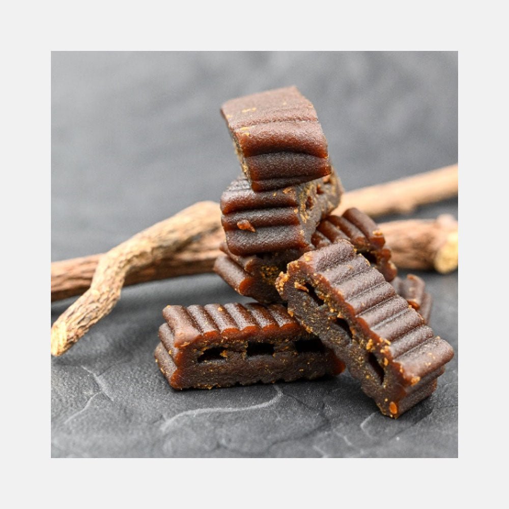 Bonbons de reglisse naturelle artisanale, fabriques selon une recette traditionnelle de Laponie. Pate preparee a partir de reglisse pure, cuite lentement au four puis decoupee a la main dans une petite fabrique. Saveur authentique et gourmande, sans additifs, sans colorants artificiels. Un goût d'antan qui seduit meme ceux qui ne sont pas amateurs de reglisse. Texture fondante et parfumée, idéale pour une pause gourmande ou en cadeau original. Ingrédients : Reglisse naturelle. Provenance : Laponie. Conservation : a temperature ambiante, à l'abri de l'humidite.