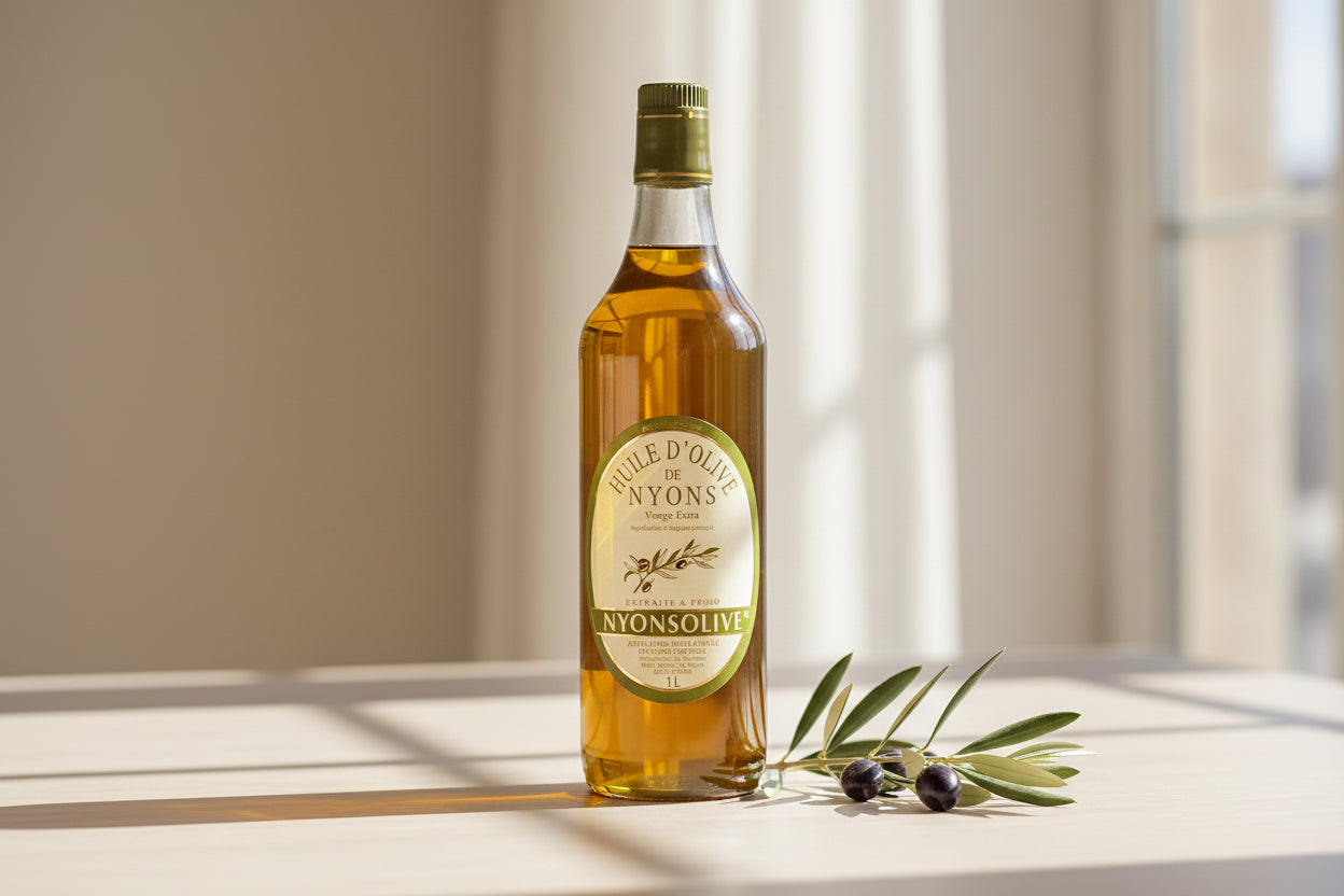 L'huile de Nyons est issue de la première pression à froid d'olives de la variété Tanche. Cette huile de qualité vierge extra se caractérise par son onctuosité, sa couleur vert doré et ses arômes fins de fruits, de noisettes et d'amandes. Elle doit son caractère à une récolte tardive (décembre/ janvier) et à son terroir. L'huile d'olive de Nyons AOP est multi-usage. Douce en bouche, elle est parfaite sur des crudités. Supportant la chaleur, elle peut être utilisée pour la finition de plats chauds, pour la cuisson et même la friture.