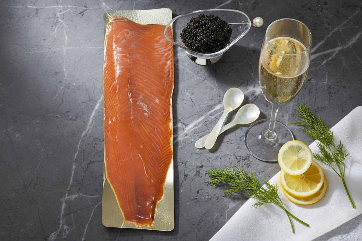 Saumon fumé des Îles Féroé tranché main a/ intercalaires a/peau ±1,5kg