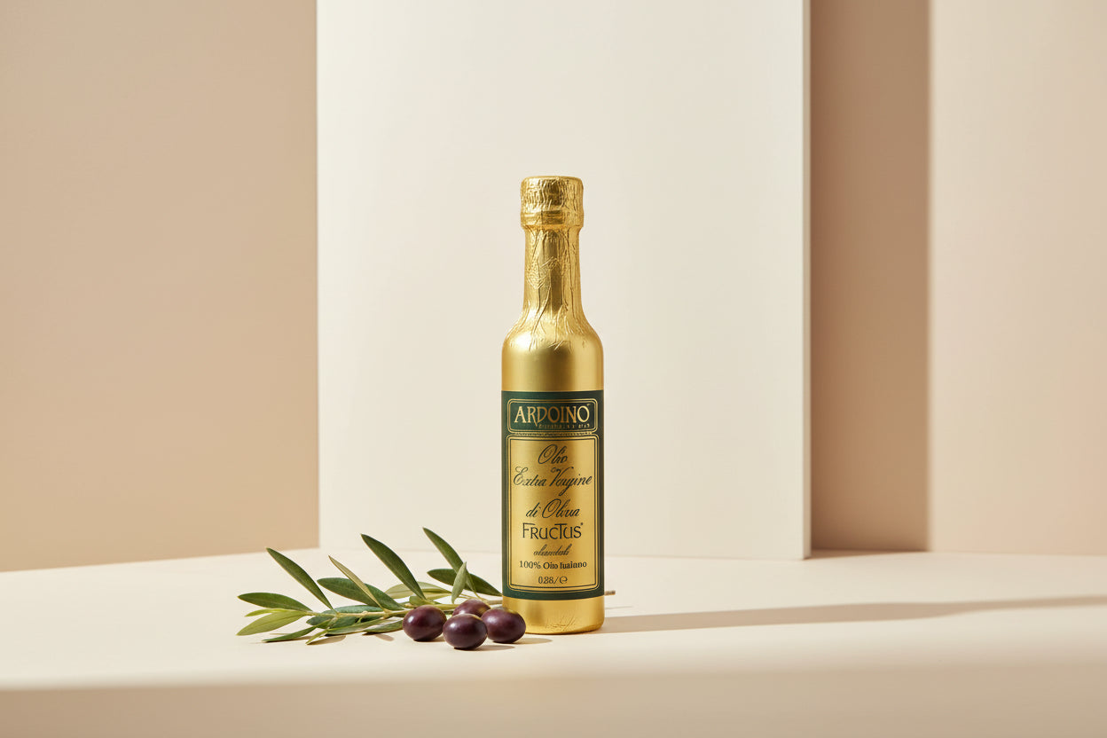 Discover the Extra Virgin Olive Oil Fructus, the pride of the Ardoino house since 1908. Produced in Liguria using craftsmanship passed down since 1870, this 100% Italian oil will delight discerning palates with its harmonious aromatic profile featuring fruity and sweet notes. Protected in an aluminum foil bottle, it fully retains its organoleptic qualities. A reference of excellence for connoisseurs in search of Mediterranean authenticity.