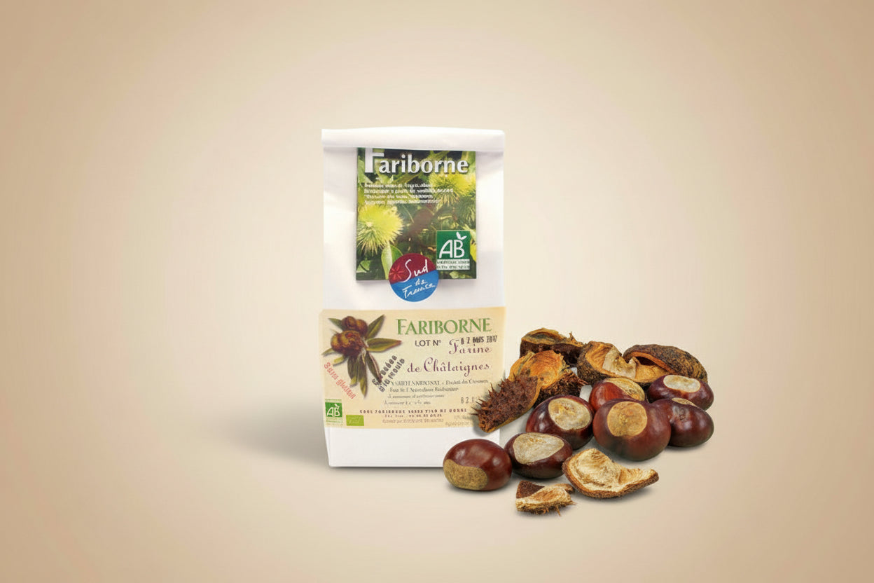 Cette farine d'exception est le fruit du travail de producteurs cévenols afin de mieux valoriser les petites châtaignes qu'ils récoltent, en les transformant tout simplement en farine. Toutes issues de l'Agriculture Biologique, ces châtaignes ont tout naturellement été séchées, puis broyées dans un moulin voisin des Cévennes lozériennes. Cette farine est idéale pour apporter une saveur légèrement sucrée, qui rappelle un peu la praline, à vos pains, pâtisseries, sauces ou encore crêpes. Elle est également très prisée des personnes allergiques au gluten.