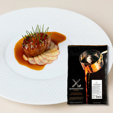 Les fonds et jus Bonemasters représentent la quintessence de la qualité dans ce domaine. Produits à partir d'éléments nutritifs frais (non surgelés) selon un procédé identique à la cuisine traditionnelle, ils ne contiennent ni sel, ni aucun additif ni épaississant ou exhausteur de goût. Seuls sont ajoutés oignons, carottes, céleri, champignons, thym frais, bouquet garni... Les 25 ans d'expérience et la passion de leur créateur, Conrad Brown, garantissent la qualité, la couleur, la texture et le goût de ces fonds et jus. Leur régularité exemplaire est garantie par des approvisionnements maîtrisés en os et coupes spécifiques, des meilleures origines, de qualité constante, choisis pour leur saveur bien marquée et naturellement salée. La méthode de fabrication, traditionnelle et naturelle mais exécutée avec une rigueur scientifique, donne une caramélisation parfaite, sans amertume, une couleur, une brillance et une saveur exceptionnelles. Ces jus et fonds de base de la cuisine traditionnelle française évitent un travail long, fastidieux et coûteux (12h de réduction pour les fonds, 24h pour les jus et 36h pour les glaces). Elles garantissent une régularité remarquable, tout en permettant aux chefs d'exprimer librement leur créativité à partir de ces fondamentaux solides. Livrés surgelés, ils se conservent jusqu'à 5 semaines au frigo, une fois décongelés. Les recettes du chef Onno Kokmeijer, Restaurant Ciel Bleu** Amsterdam, sont sur la chaîne YouTube Le Delas.