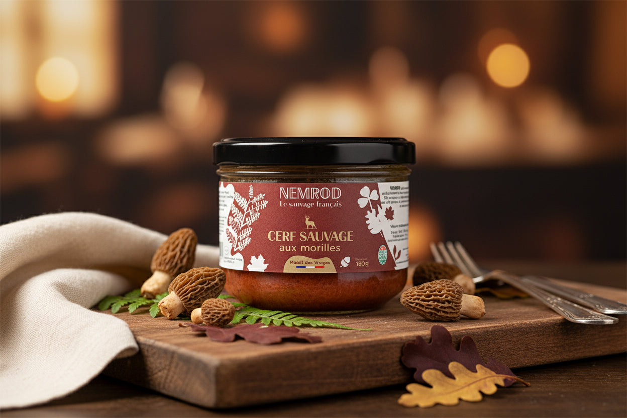 Terrine de cerf sauvage français aux morilles verrine 180g